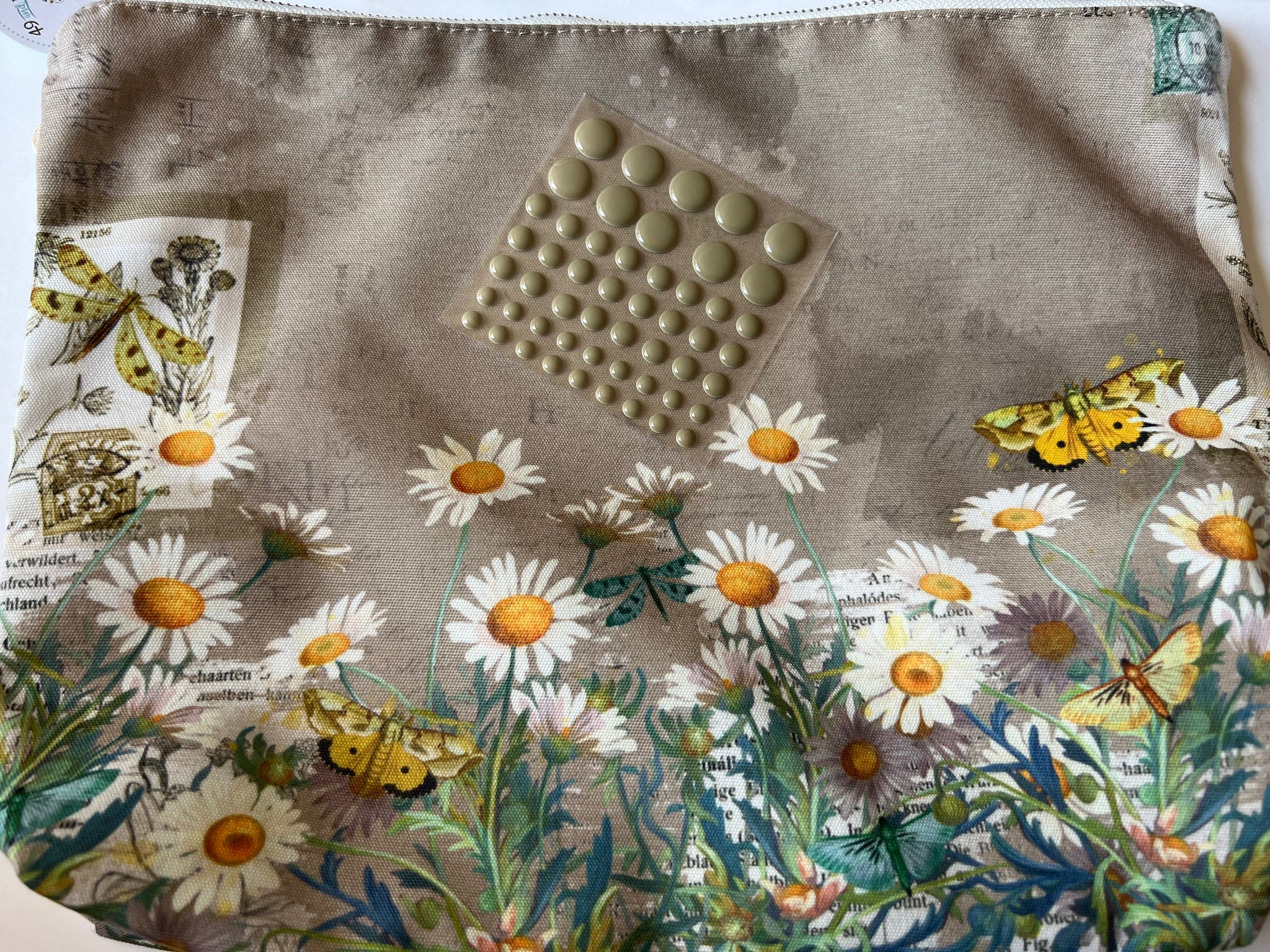 A limited edition project bundle which includes an exclusive printed zippered project tote bag. Krafty garden 49 and market zipper tote. Includes exclusive matching enamel dots. Approx size 13” x 9