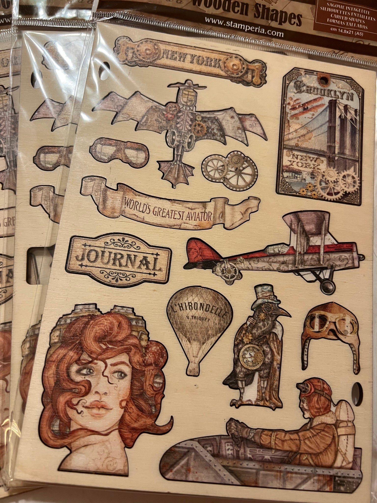 stamperia lotAntonis tzanidakis vintage world map stamp approx size 6” x 8” white rubber 3 packages of wooden shapes . All packages are the same